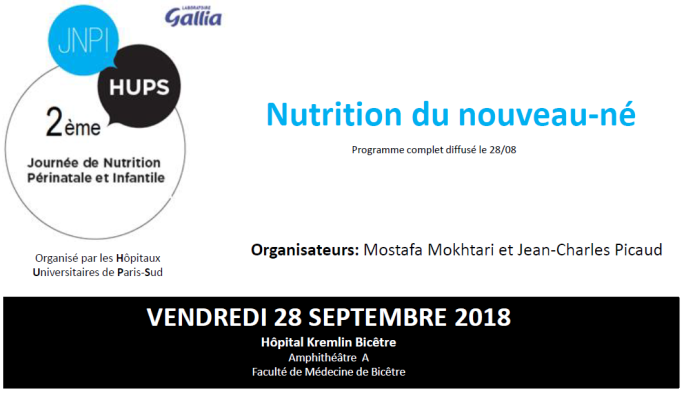 La 2ème Journée de Nutrition Périnatale et Infantile aura lieu le VENDREDI 28 SEPTEMBRE 2018 à l’Hôpital Kremlin Bicêtre – Amphithéâtre A – Faculté de Médecine de Bicêtre.